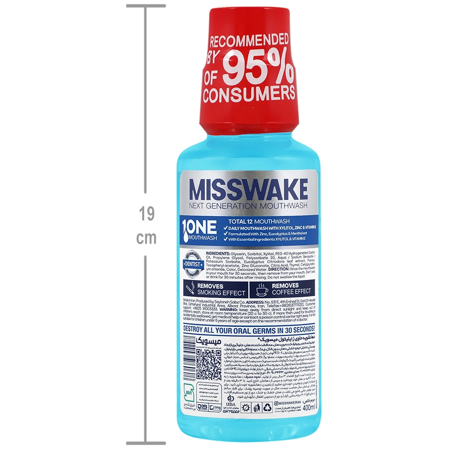 دهان شویه کامل 12 کاره حاوی زایلیتول میسویک حجم 400 میل