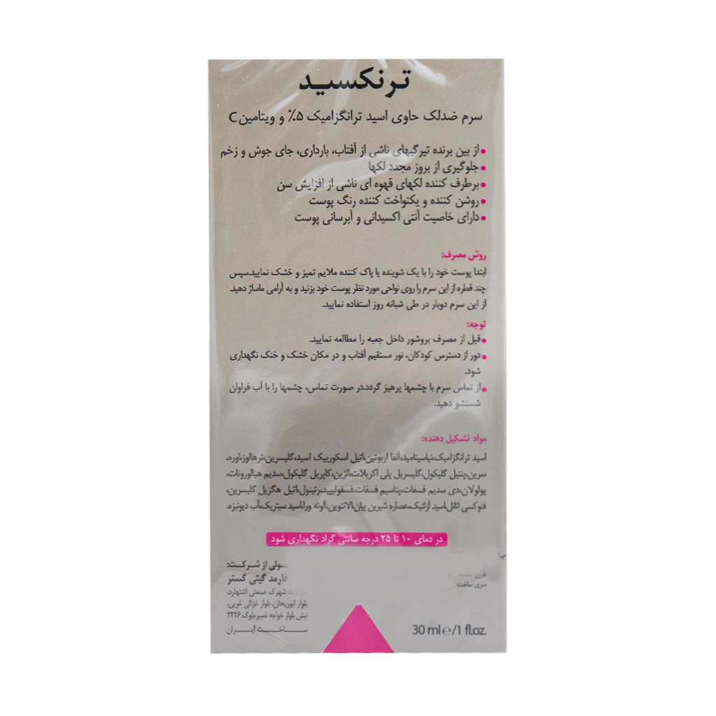 - حاوی اسید ترانگزامیک 5% و ویتامین سی