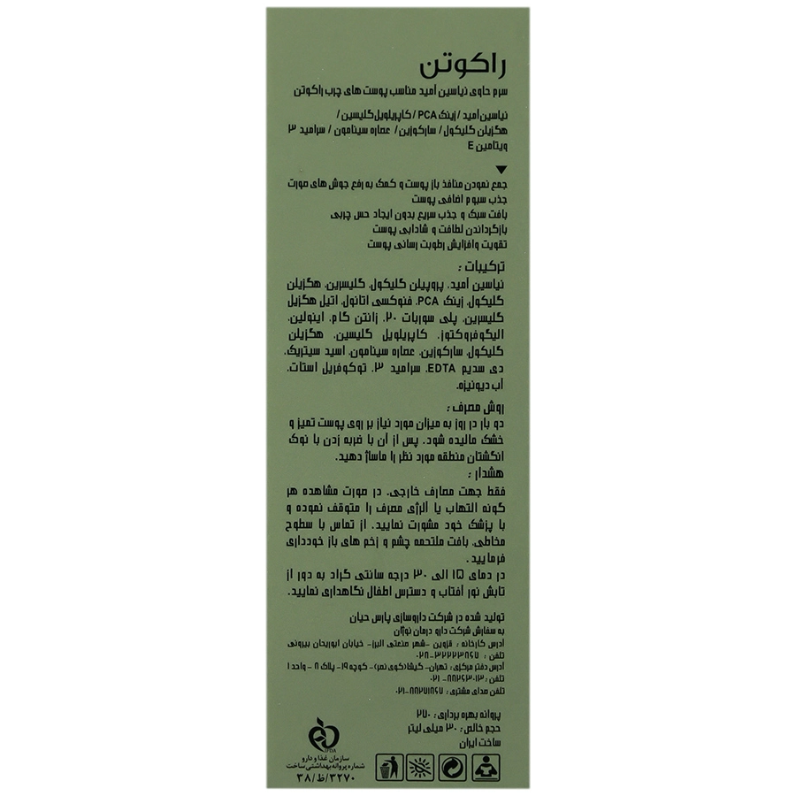 لیست ترکیبات سرم نیاسینامید پوست چرب راکوتن