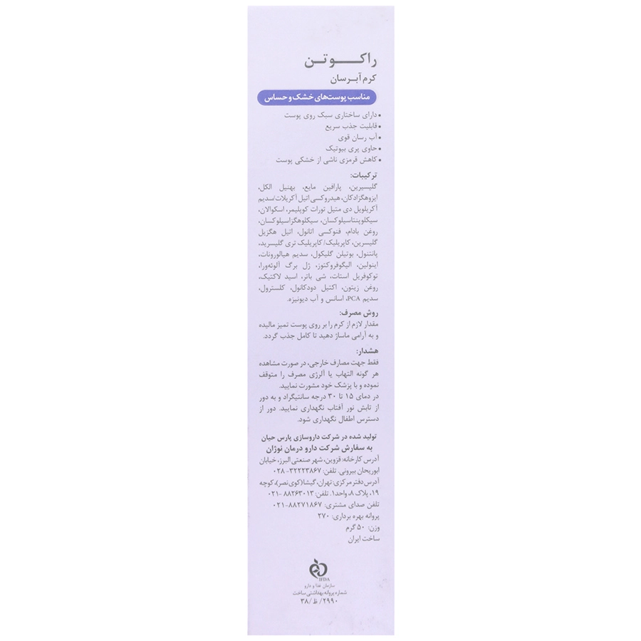 کرم آبرسان راکوتن فقط جهت مصرف خارجی طراحی شده است.