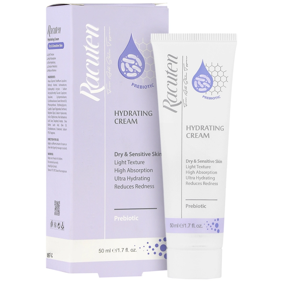 کرم آبرسان راکوتن مدل Prebiotic با بهره گیری از ترکیبات موثری هم چون؛ ژل برگ آلوئه ورا، عمل آبرسانی به پوست خشک و حساس را انجام می دهد و با ایجاد سدی مرطوب کننده بر روی پوست به کمک؛ گلیسرین، ویتامین E، روغن زیتون، سدیم PCA و روغن بادام ، مانع از تبخیر آب پوست می گردد.