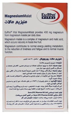 قرص منیزیم مالات یوروویتال (Eurho Vital Magnesium Malate 400 mg) مکملی با جذب بالا و اثربخشی سریع است که برای بهبود عملکرد عضلات، کاهش خستگی، و حمایت از سلامت سیستم عصبی طراحی شده. این محصول حاوی 400 میلیگرم منیزیم به فرم مالات است که با اسید مالیک ترکیب شده و جذب بهینهای در دستگاه گوارش دارد.
