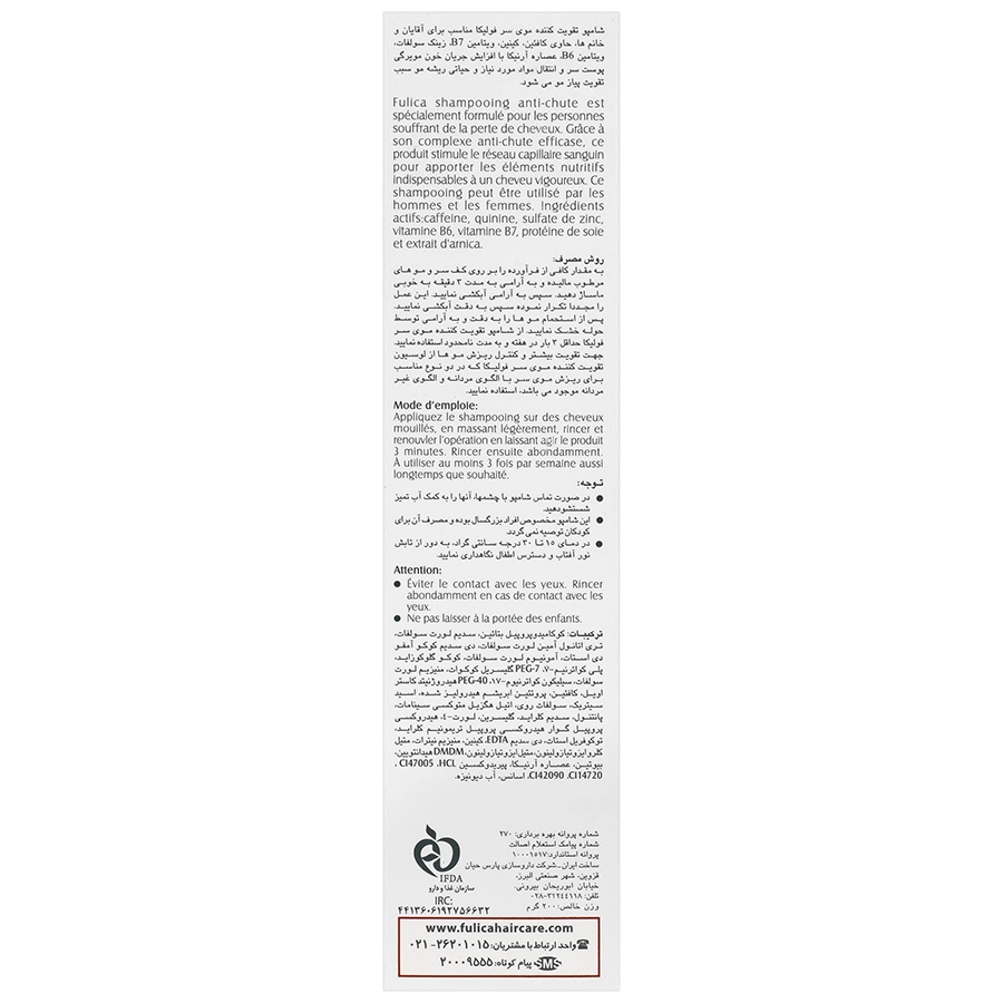 شامپو ضد ریزش فولیکا، حاوی مواد موثری نظیر ویتامین B6، زینک، ویتامین B7، کافئین و عصاره گیاه آرنیکا است؛