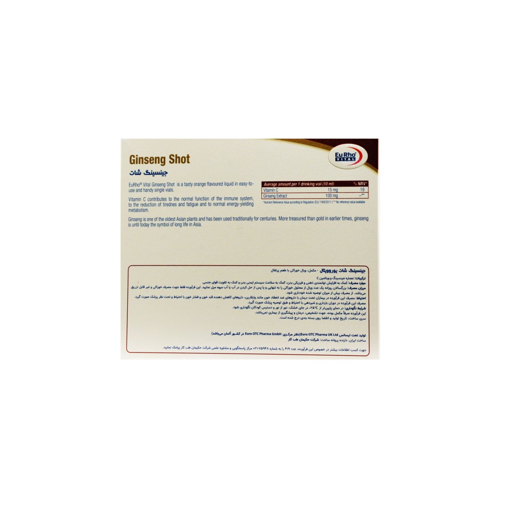 ویژگیهای ویال جینسینگ شات یوروویتال
