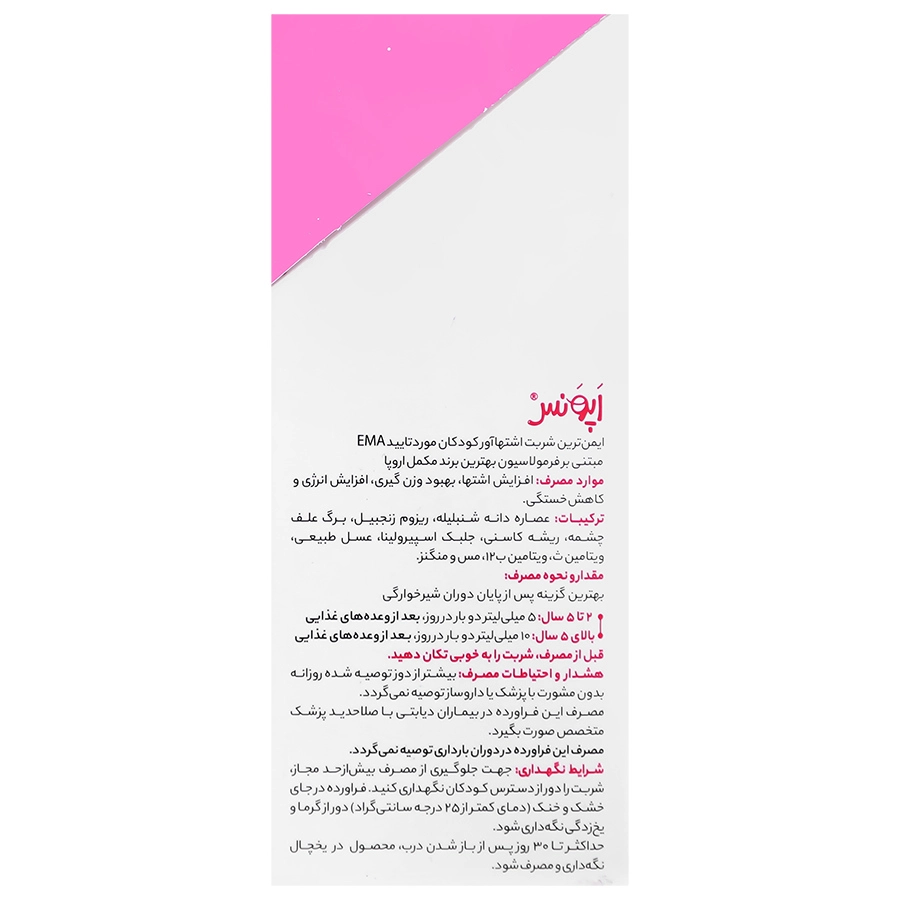 اپونس انتخابی ایدهآل برای کودکان کماشتها، نوجوانان در حال رشد، بزرگسالان دچار ضعف یا بیمیلی غذایی و حتی افرادی است که پس از بیماری یا استرسهای طولانی، به دنبال بازیابی انرژی و تعادل بدن خود هستند. ترکیب منحصربهفرد آن، ضمن افزایش میل به غذا، به تقویت دستگاه گوارش، جذب بهتر مواد مغذی و بهبود عملکرد عمومی بدن کمک مینماید.