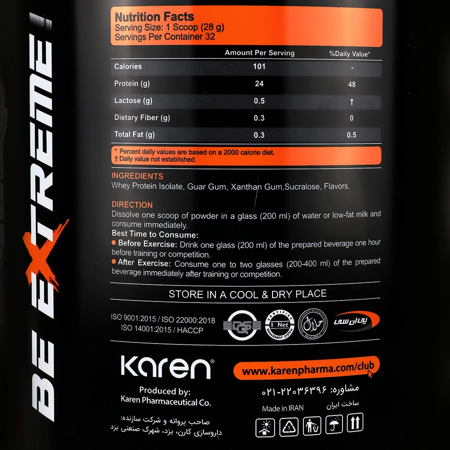 پروتئین وی ایزوله دارای خلوص پروتئین بالا و حداقل میزان کربوهیدرات و چربی می باشد.