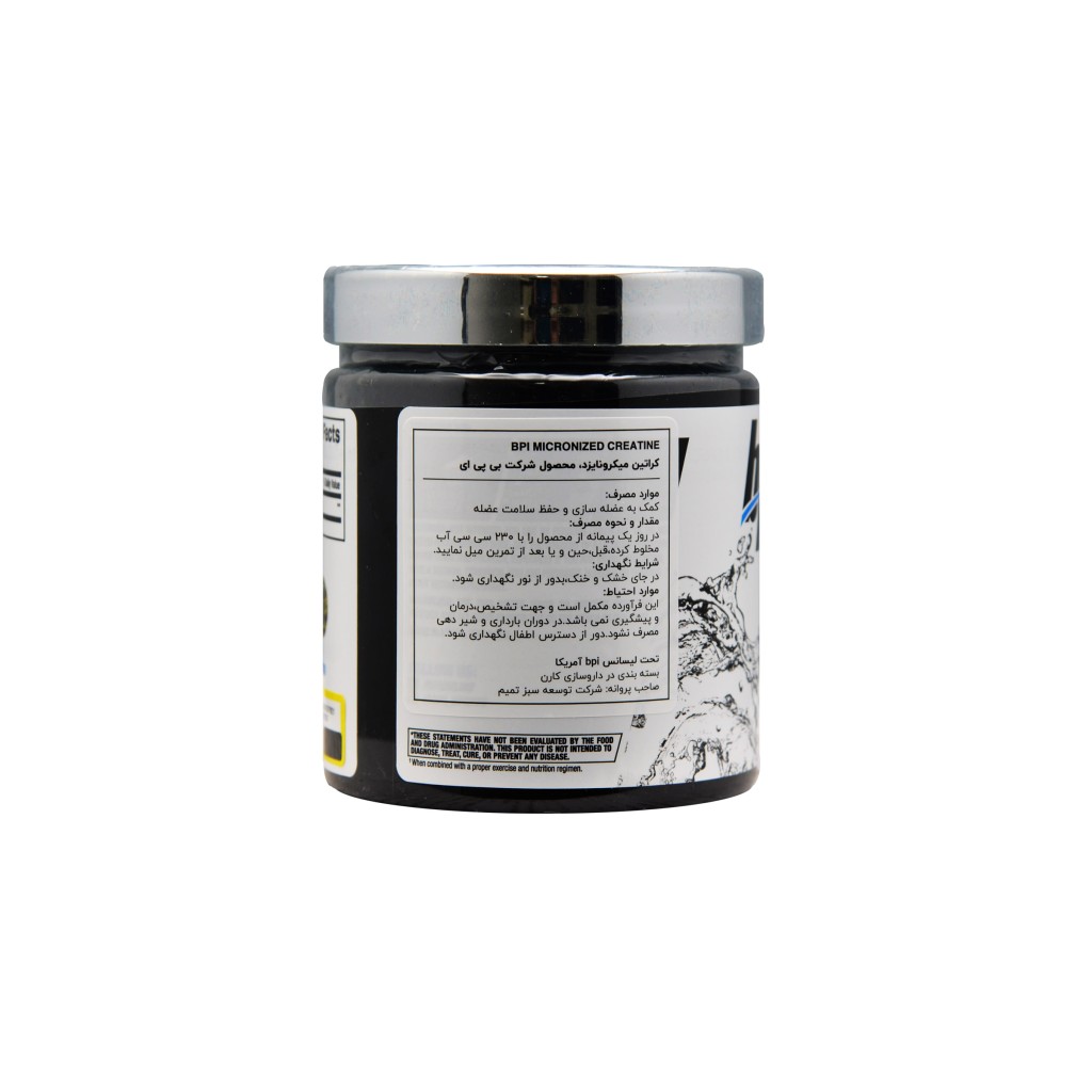 پودر کراتین میکرونایزد BPI Sport حاوی 5 گرم کراتین است که به صورت 100% خالص تهیه شده است. این پودر ورزشی فوق خالص و با جذب سریع یک محصول بسیار باکیفیت است که تحت لیسانس یک شرکت آمریکایی تولید و توزیع شده است. پودر کراتین میکرونایزد بی پی آی اسپرت باعث تبدیل شدن مولکول های بزرگ کراتین به ذرات کوچکتر برای بهینه سازی فراهم شدن زیست محیطی و جذب بهتر میکرونیزه خواهد شد. این مکمل ورزشی بی پی آی به طور موثری به افزایش رشد عضلات، قدرت و عملکرد ورزشی کمک می کند. در حالی که از طرف دیگر انرژی سلولی را تقویت می کند، خستگی را کاهش میدهد و ریکاوری را افزایش می دهد. محققان به این نتیجه رسیده اند که خرید و استفاده از پودر کراتین میکرونایزد بی پی آی اسپرت باعث کاهش التهاب عضلانی و کمک به ریکاوری عضلات پس از تمرینات شدید می شود.
