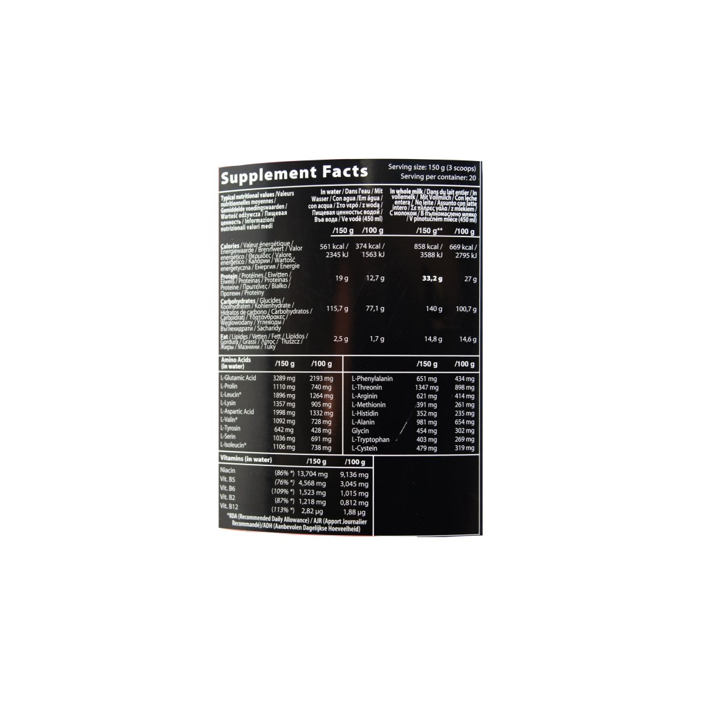 - روزانه، 1 الی 2 پیمانه (معادل 150 گرم) از این مکمل را در 450 میلی لیتر آب حل کرده و قبل یا بعد از تمرین بخورید.