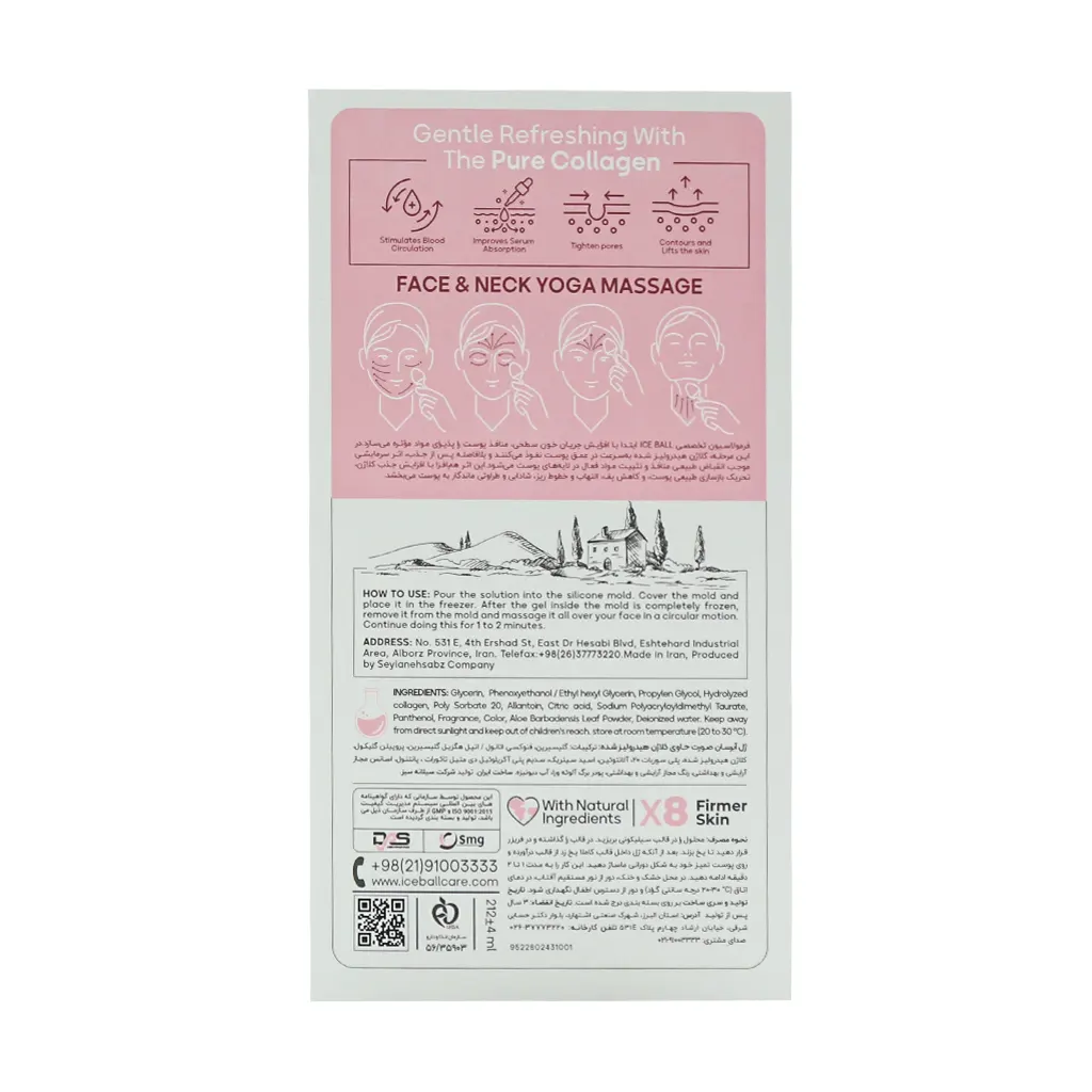 لیست ترکیبات ژل آبرسان کلاژن لیفتینگ صورت آیس بال